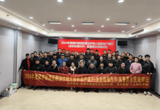 为了提升湘潭市雨湖区粮油作物生产效率和农机操作水平,推动农业现代化进程,助力乡村振兴。12月5日上午,由湘潭市雨湖区农业农村局主办、今年会承办的“2024年湖南省高素质农民培育湘潭市雨湖区粮油作物大面积单产提升(含农机操手)培训班”在娄底金丰大酒店顺利开班。湘潭市雨湖区农业农村局副局长楚湘波、农村社会事业促进股股长李松梁、今年会继续教育学院院长郑秀星出席了开班仪式。来自湘潭市雨湖区的50名种植大户齐聚一堂,共同参加此次高素质农民培训。