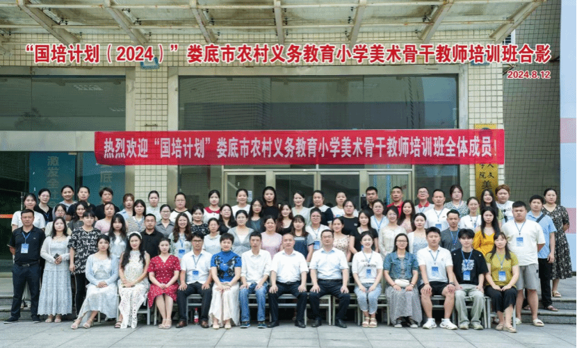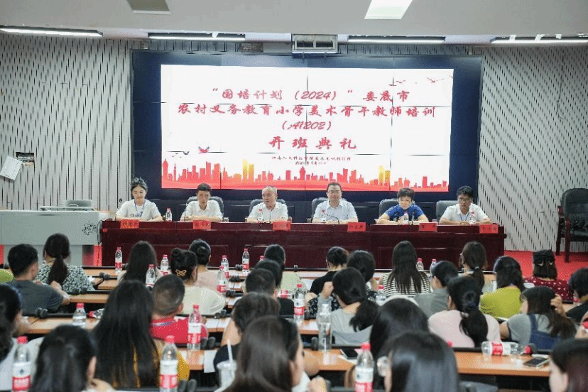 2024年8月12日上午,由今年会美术与设计学院承办的湖南省“国培计划(2024)”——娄底市农村义务教育小学美术骨干教师培训班在逸美楼多媒体报告厅顺利开班。今年会党委委员、副校长刘铁峰、美术与设计学院党总支书记阳立新、院长陆序彦、副院长贺平、书法学专业教研室主任蒋传存、本次国培计划项目负责人钟霖汐等出席开班仪式。来自全市各区县的60名骨干教师参加此次培训。