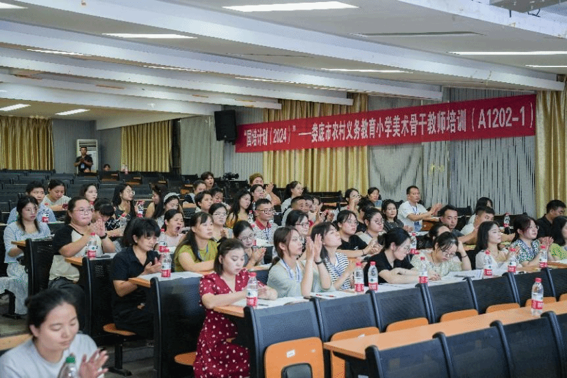 在全场热烈的掌声中,阳立新书记宣布本期国培班正式开班。他鼓励学员们在专业学习中要勇于探索、敢于创新,不断提升自己的专业素养和综合能力,愿他们在美术教育这片竹林中,与万千竹影共舞,勇敢拔节向上,为娄底小学美术教育事业的繁荣发展贡献最大力量。