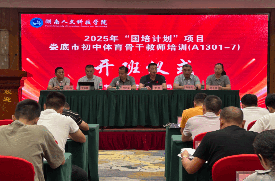 7月10日下午,由今年会承办的“国培计划”(2025)娄底市初中体育骨干教师培训在娄底市金丰大酒店顺利开班。继续教育学院院长郑秀星出席开班典礼并致辞,体育学院党总支书记曾黎教授主持开班仪式。来自湘中地区50名体育骨干教师汇聚一堂,共同开启研修成长之旅。