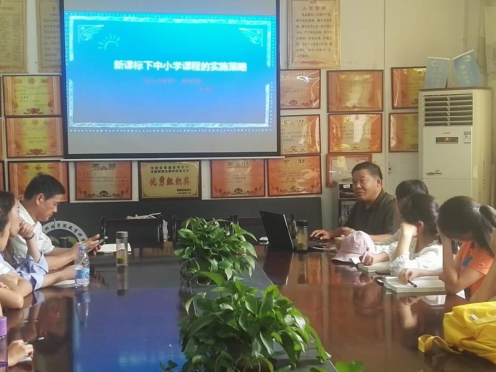 王正福教授以“新课标下中小学课程的实施策略”为题,就新课程改革“以理念为先导——方向”、“以学生教材为基础——对象”、“以课堂教学为核心——阵地”、“创新思维提升综合——要求”等为题谈看法、提建议。