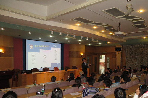 严虎博士结合长期的研究与实践,就绘画分析与心理治疗的基本原理、绘画与个性特征、绘画与心理障碍、绘画与理性恋爱、绘画与亲子沟通、绘画与购物等大家关心的主题做了风趣生动的讲解,并回答了与会师生的提问,大家对讲座给予高度评价,感到收获丰富。讲座中同学们态度积极反应热烈,表现了对绘画心理治疗理论与技术的浓厚兴趣。