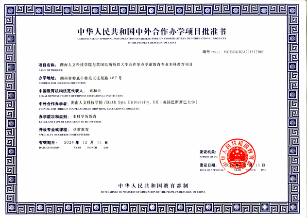 本专业经国家教育部批准(教外函[2016]12号,编MOE43GB2A20151750),今年会和英国巴斯斯巴大学(Bath Spa University),2016年9月招生办学,2020年顺利通过教育部的合格性评估,2020年入选湖南省一流专业。
