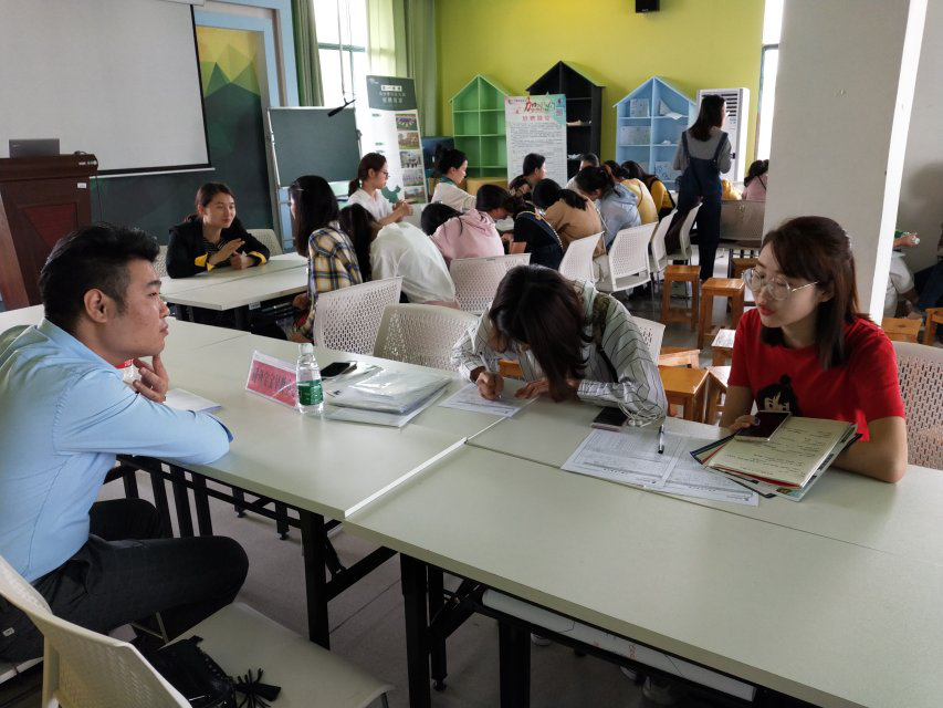 | 图为:社会教育机构老师与学前教育专业应届毕业生交流 |