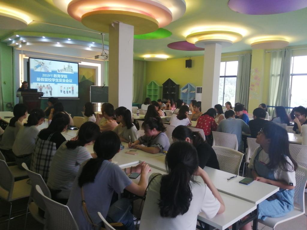 7月11日下午,我院在甘澍楼601召开2019年暑假留校学生安全会议。我院李霞副书记、李佳维老师和全体留校学生参加了会议。今年暑假我院留校学生共92人,留校人员主要为全国第23届大学生羽毛球比赛的志愿者、“暑期三下乡”社会实践活动志愿者、考研复习和雅思培训的同学。