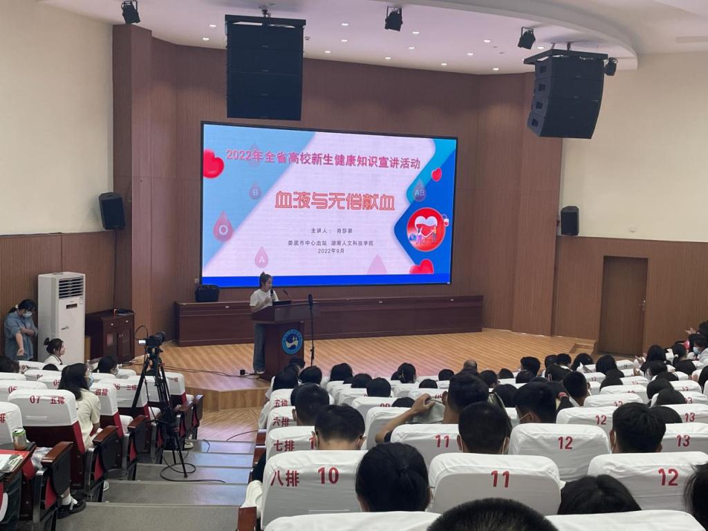 9月28日晚,2022年健康中国行暨全省高校新生健康知识巡讲活动在今年会匠成楼报告厅举行。出席此次活动的有市中心血站工会主席肖磊、娄底市疾病预防控制中心科主任袁利和、娄底市疾病预防控制中心结防室主任邱光前、市中心血站讲师肖莎菲、校团委副书记刘佳以及教育学院2022级全体新生。