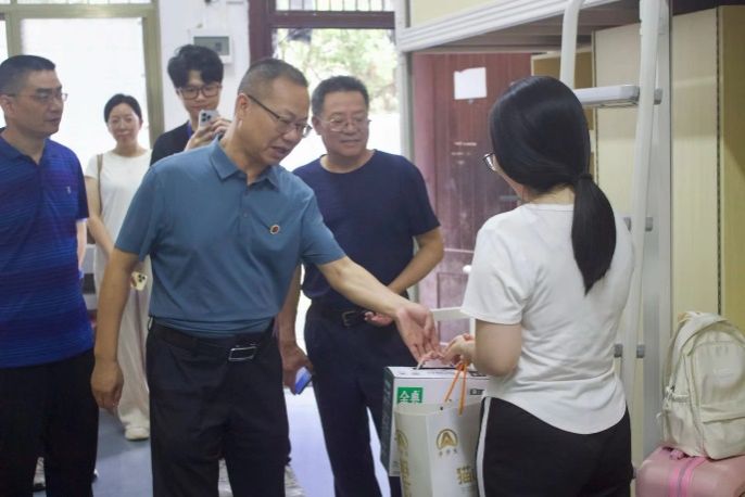 在学生第五栋新生宿舍楼,每到一处宿舍,院领导都亲切地与新生们交谈,询问他们是否适应新环境,对学校的饮食、住宿条件是否满意,并检查宿舍的安全卫生状况,叮嘱同学们要注意个人卫生,保持宿舍整洁,共同营造一个安全、健康、和谐的学习生活环境。同时也勉励新生们要珍惜大学时光,强调要注重身心健康,同学之间要相互关爱,也要注意人身安全和财产安全,谨防诈骗。新生们纷纷表示,学院提供的住宿条件优越,校园环境美丽,老师们和学长学姐的热情帮助让他们感受到了家的温暖。