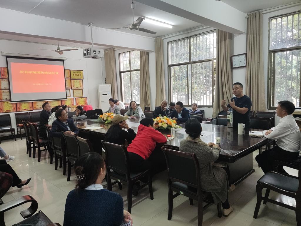 10月10日下午,教育学院在甘澍楼304会议室召开消防培训工作会议。会议邀请了娄底市应急管理局下属单位烈火行者专业讲师到会主讲,学院党总支书记邹坤主持会议,院长刘超良,副院长刘黎明,学院全体教师参加培训。