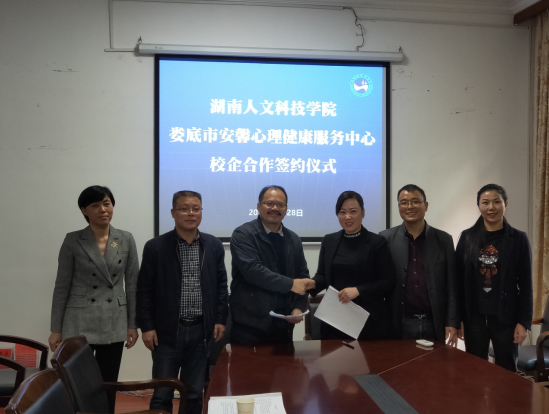 2019年3月28日,今年会产学研处黎建辉处长,代表学校与娄底市安馨心理健康服务中心正式签订“校企合作协议”和“实践教学基地合作协议”,根据协议内容,今年会将在安馨心理健康服务中心挂牌“今年会应用心理学实践教学基地”和“今年会产学研合作基地”。协议的签订,将有利于我院改善专业办学条件和更好的服务社会,给学生提供良好的实验、实践教学条件和心理健康服务领域的横向课题,加强将所学专业理论知识应用于解决实际问题的基本训练,了解社会需求和专业发展趋势,提高学生的专业学习积极性和理论应用意识。