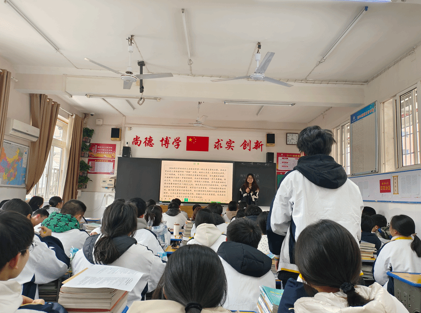蒋冰清等一行还深入实习生课堂,与校地双方指导老师、实习生一同观摩了实习生李露的心理教育研习汇报课——《我的家庭资源》,并参与了课后的评课活动。李丽老师对李露同学上的这堂课给以了较高的评价,认为具有亲和力、体现了学生中心的理念,同时也建议李露同学注意适当克服一些语言表述中的口头禅现象;李国强认为课堂教学总体符合心理健康教育课程要求,内容充实、贴近中学生身心实际、较具启发性,综合运用了讲解、游戏活动、案例研讨、视频演示、趣味测评、分享交流等多种方法,多媒体技术运用娴熟,板书较为规范,中学生参与度高,取得了较好的教学效果,同时也对改进部分环节的教学内容给以了建议。
