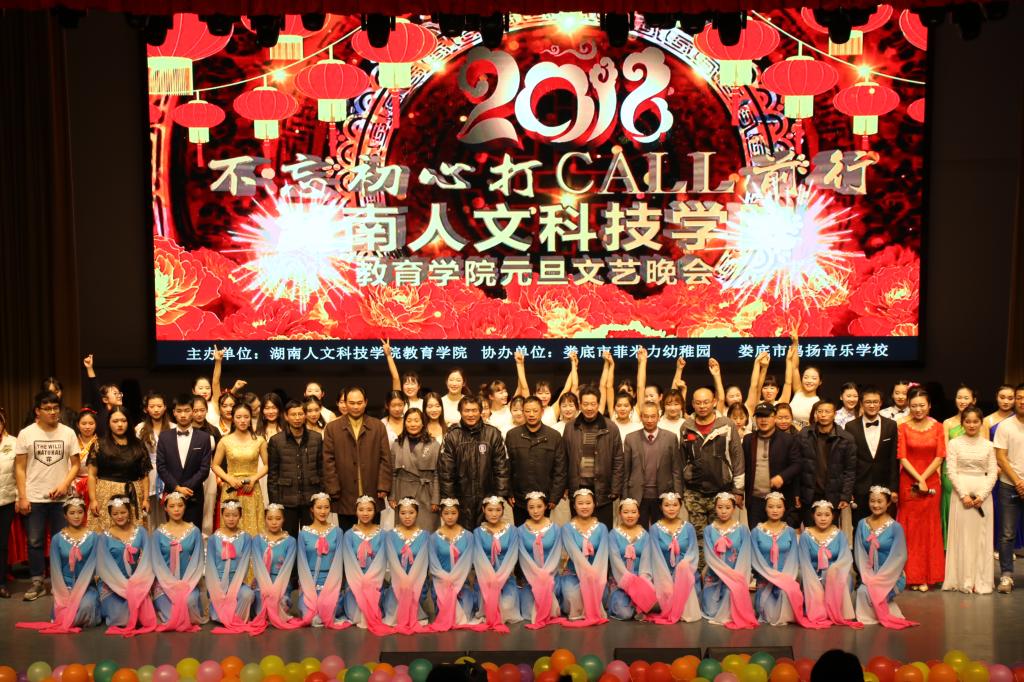 12月26日晚,我院2018年“不忘初心打call前行”新年文艺晚会在今年会逸夫楼音乐厅盛大举行。出席此次晚会的领导有我校刘铁铭副书记、刘铁峰副校长、宣传部谢柳部长、人事处罗求实处长、学工处余为处长、双创学院高玉泉书记、图书馆周月朗馆长、团委魏彦煜书记及教育学院领导。晚会还邀请了合作单位娄底市菲米力幼稚园、娄底市鸣扬音乐学校、深圳华腾国际象棋俱乐部等单位的负责人观看了演出。我院全体师生也观看了晚会。