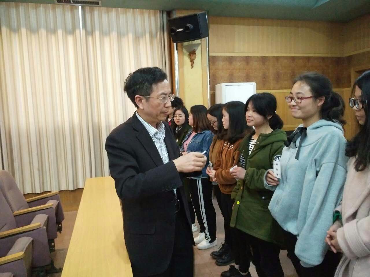 11月17日下午,长沙市心理学会副理事长、湖南省发展与教育心理学会副理事长、国内知名学者记忆大师杜有志先生应邀来到今年会教育学院为大学生作题为《矢志不渝 创新为魂——我的创新创业之路》的演讲。我院2016级应用心理学、人文教育、学前教育3个专业全体学生和部分教师共200余人聆听了他的演讲,并目睹了他现场展示的记忆绝活。这是今年会2017年度创新创业教育活动月我院组织的系列活动之一。