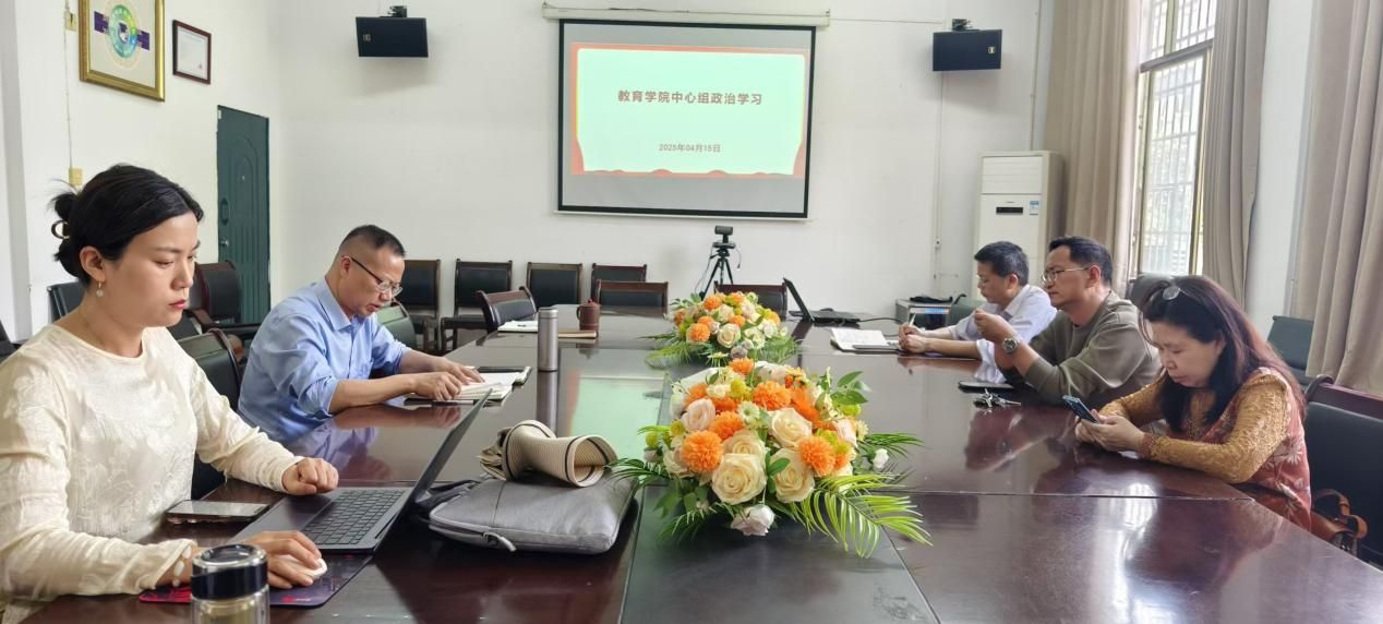 4月15日,教育学院党总支理论学习中心组在甘澍楼304召开中心组政治学习会议,及时学习领会习近平总书记近期重要讲话、中央八项规定和上级重要指示批示精神等内容,会议由院党总支书记陈功平主持。