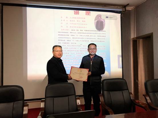 2019年12月3日(星期二)下午,湖南省教科院盛正发教授(博士、湖南省教科院院办科研处处长、博管办主任)在今年会美术与设计学院多媒体报告厅给教育学院师生做了一个题为“人工智能与教育变革”的精彩讲座。盛正发博土从互联网推动人类文明、教育的本质属性、互联网+引发教育变革,信息技术改变教育形态等四个方面论述了人工智能对教育的影响。盛教授的讲座生动有趣,深入浅出。师生们都听得很认真!老师们深受启发。