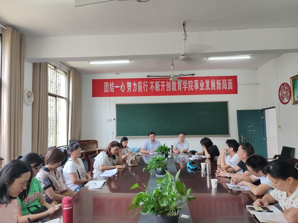 9月17日下午3:00,教育学院在甘澍楼304会议室召开全体教职工大会,主要就疫情防控有关工作进行安排部署。会议由党总支副书记、院长刘超良主持,党总支书记邹坤、副书记田密,全体教职员工参加会议。