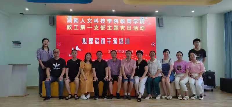 8月13日至14日,教育学院教工第一党支部在支部书记王旭红的带领下举行“心路漫漫,一心向党”主题党日活动,聆听中南大学湘雅二医院蔡太生教授的心理危机干预讲座,学习新时代心理学本土化精神,并就后疫情背景下如何做好心理危机干预进行研讨。活动还邀请了部分学生预备党员参加。