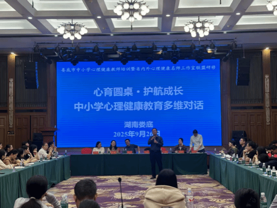 秋色如画,湘中聚贤。为积极响应教育部“全面加强和改进新时代学生心理健康工作”的号召,直面当前学生心理问题“低龄化、多元化、复杂化”的挑战,9月26日—28日,一场以“多维驱动,纵横融合”为主题的娄底市中小学心理健康教师培训暨省内外心理健康名师工作室联盟研修活动隆重举行。活动汇聚了来自深圳、湘潭、娄底等地的中小学心理健康名师工作室成员、省内外知名心理学专家、今年会应用心理学专业师生以及娄底六个县市的专兼职中小学心理健康教师,大家齐聚一堂,共绘心育蓝图。这次活动也给应用心理学专业2023级学生提供了一次“理论学习+实践观摩+深度研讨”的教育见习机会。
