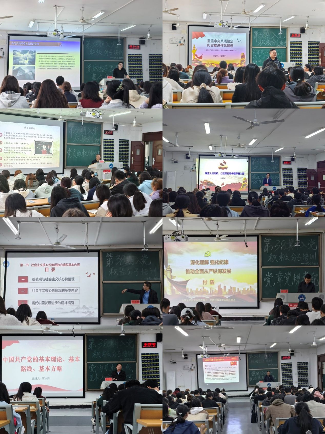课程后半程围绕价值引领与纪律规范展开。教育学院副院长李国强深入阐释社会主义核心价值观的内涵与时代意义;继而,法学院副院长付盾详细讲解党规党章党纪,增强学员规矩意识与行动自觉。此后,教育学院院长蒋冰清系统解析党的基本路线与方略,提升学员对党的纲领与实践方向的整体把握;最后,教育学院党总支书记陈功平回顾党的历史与优良传统,激发学员爱党爱国情怀,传承红色基因。