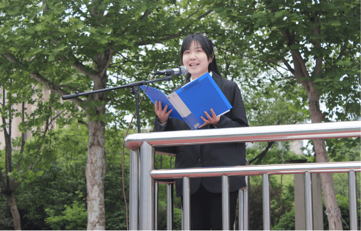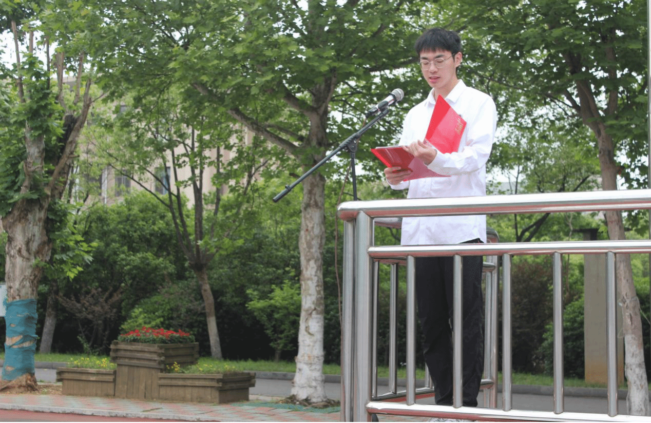 造血干细胞捐献者20级应心一班蒋永芳做国旗下的演讲,他结合自身经历阐述了爱心奉献和服务社会的重要性,激励新时代青年积极承担社会责任,共同创造美好世界。