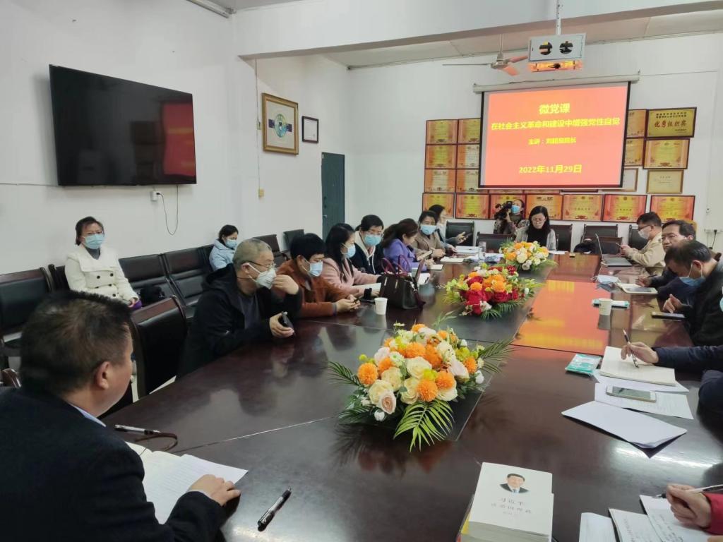 刘超良给全体教师讲“在社会主义革命和建设中增强党性自觉”为主题的微党课,带领大家学习中国共产党自我革命的内在逻辑、历史进程与经验启示,以理论视角引导大家对党的二十大提出的重要思想进行深入认识和理解。