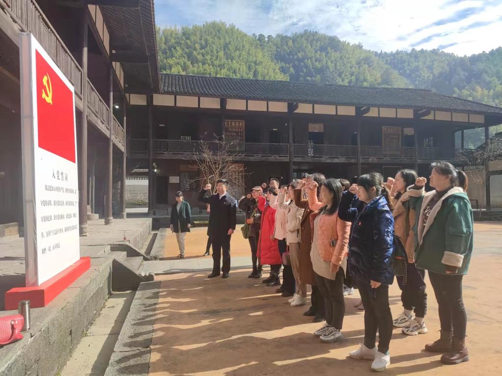 在新化县奉家镇红二军司令部旧址,全体党员同志佩戴党徽,面向党旗,右拳攥握,重温入党誓词,铿锵的誓词让党员再次接受了心灵的净化和洗礼。宣誓结束后,大家在工作人员的指导下参观了相关文物,重温革命事迹。