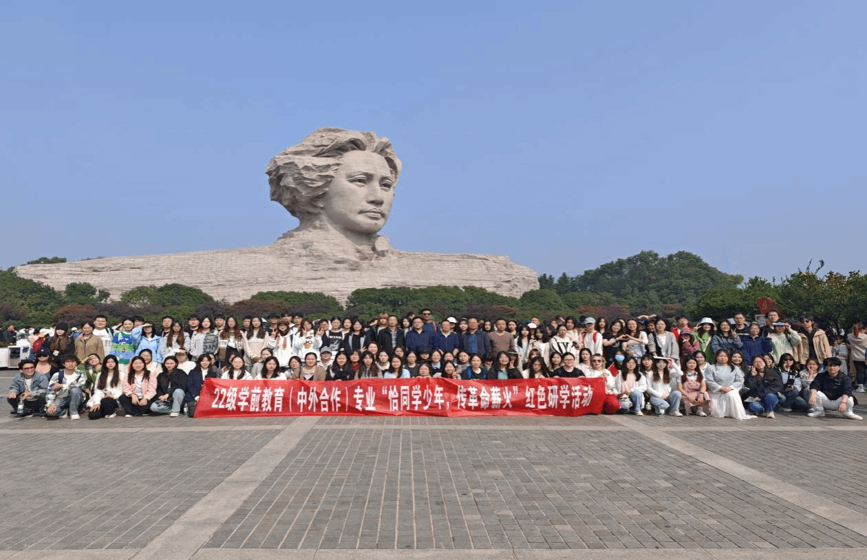 为提升学生思想政治素质、厚植爱国情怀,11月2日,教育学院组织22级学前教育(中外合作)专业学生前往湖南长沙橘子洲开展“恰同学少年 传革命薪火”红色研学活动。教育学院党总支书记陈功平,院长蒋冰清,党总支副书记周卫军,副院长曹俊军、李国强,学工办全体辅导员以及一位外籍授课教师参与了此次活动。