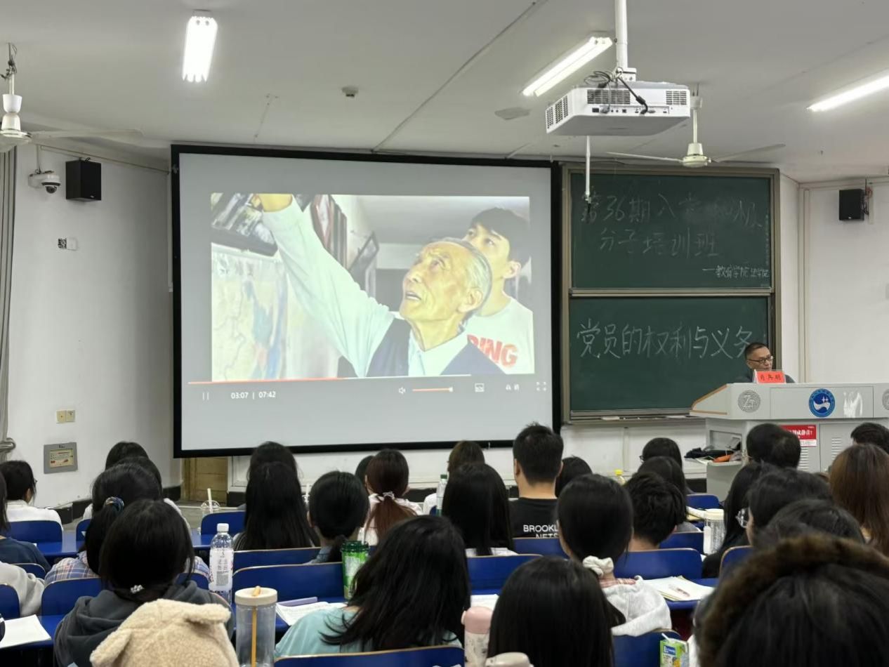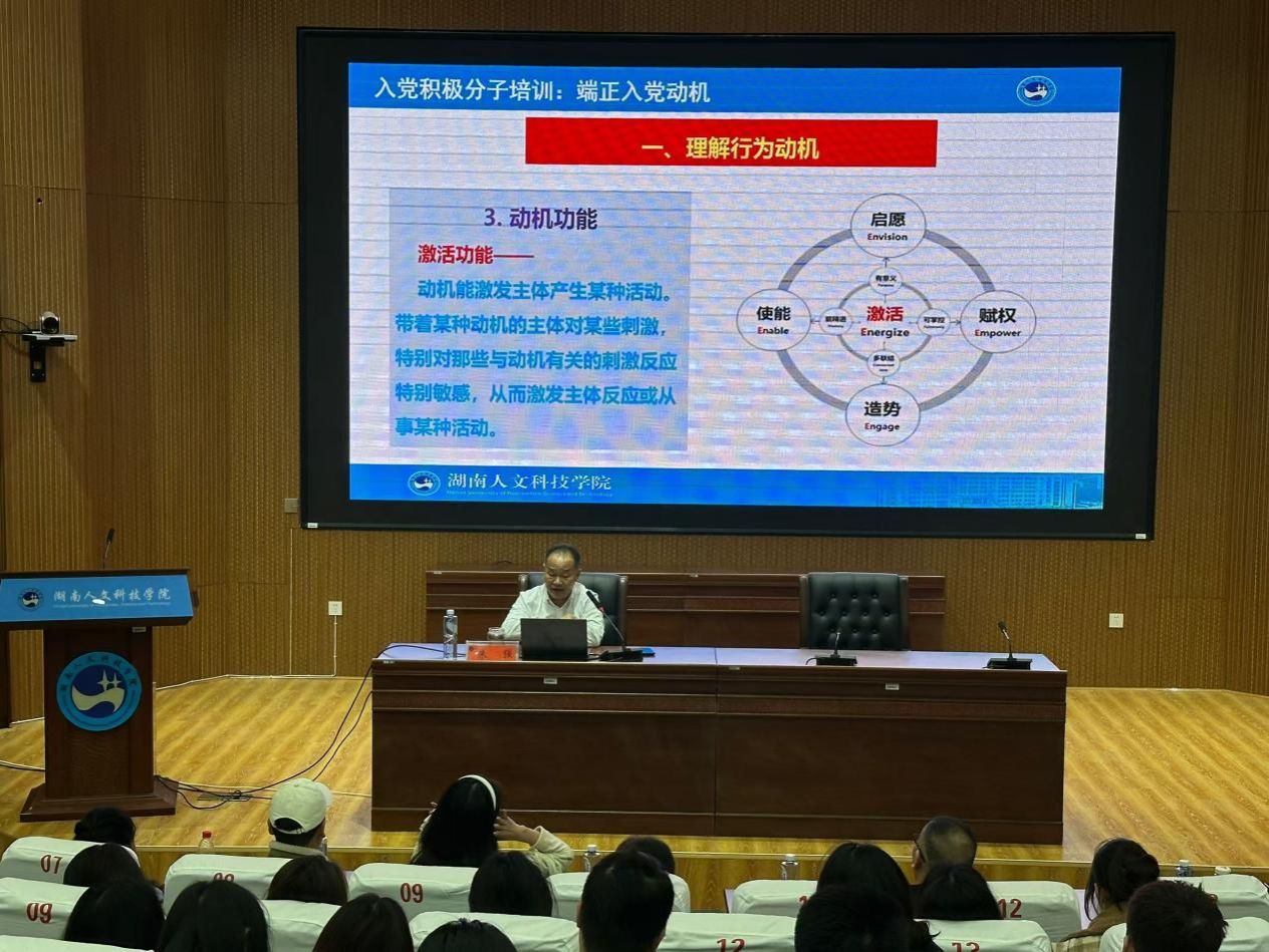 第七堂课,校党委副书记朱强就《端正入党动机,争取早日入党》这一课题对学员提出要端正入党动机。表明入党动机是党员思想上入党的根本问题。让学员们深化对党的认识,提高自身综合素质,以实际行动争取早日加入党组织。