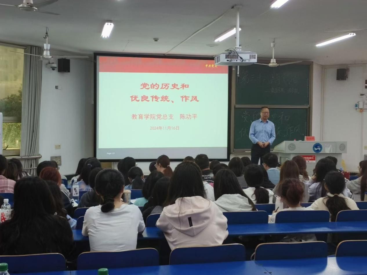 第三堂课,教育学院书记陈功平从《党的历史和优良传统、作风》入手。让学员们深刻领悟到党在不同时期的伟大奋斗历程与卓越成就,深感这些传统作风对新时代的重大意义。