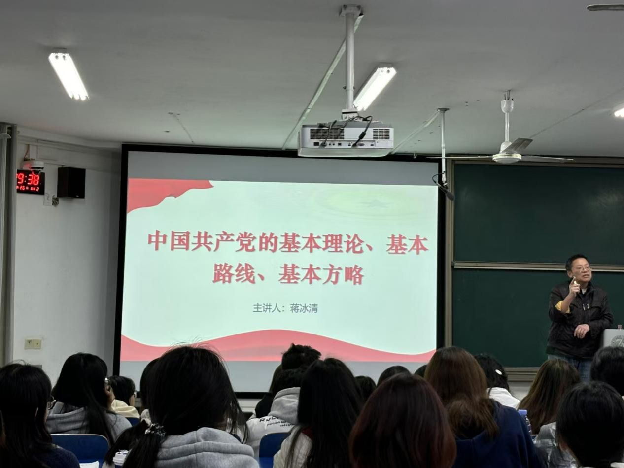 第一堂课由文学院书记尹钟宏为入党积极分子讲解党的指导思想、基本理论两部分基本内容,他通过讲述马克思列宁主义是科学的理论体系及马克思主义中国化的理论成果进行授课,有效强化了学员们坚定跟党走的意识。