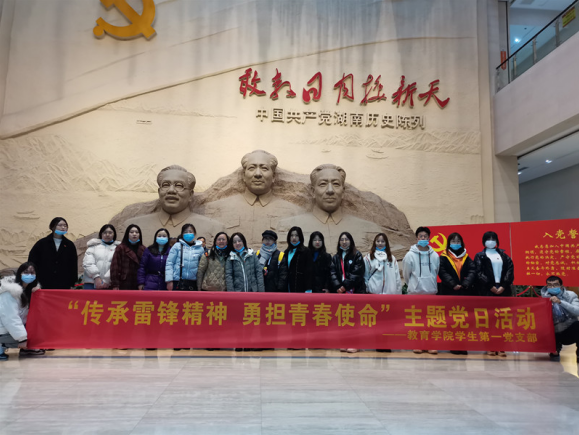 教育学院学生第一党支部于12月13日赴长沙望城开展了“传承雷锋精神、勇担青春使命”主题党日活动。师生党员24人赴长沙市望城县参观了湖南党史陈列馆及雷锋纪念馆。此次主题党日活动旨在缅怀革命先烈丰功伟绩,回顾党的光辉历程,接受心灵的净化洗礼,并亲身感受雷锋精神,学习雷锋艰苦奋斗和无私奉献的精神。