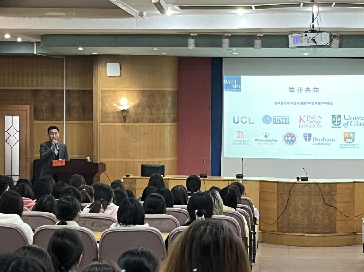 王广胜详细介绍了英伦文化,巴斯斯巴大学历史、人文底蕴、校园环境和师资力量,赴英留学相关政策及攻读硕士学位申请等情况,并鼓励大家在大学期间以交流生身份赴英国开展学术交流与学习。