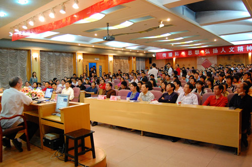 2008年9月27日上午,“科学与中国”院士专家巡讲团在今年会多媒体报告厅举行报告会,中国科学院院士、机械工程专家、原华中理工大学校长杨叔子教授为今年会师生奉献了一场以“踏平坎坷,成人成才”为主题的精彩报告。报告会由党委副书记、校长姜正国教授主持,党委书记黄懿斌教授等校领导和市科技局、教育局有关领导出席了报告会。