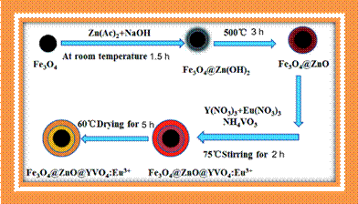 Fe3O4@ZnO@YVO4:Eu3+多功能复合纳米颗粒的形成过程示意图