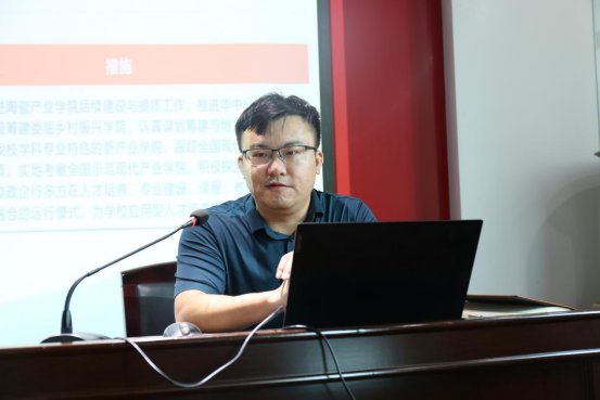 校地校企合作处处长于意主要就2021年度上半年学校的横向项目、现代产业学院、产教融合项目和常规管理工作做了回顾和工作总结,并就下半年的重点工作作了部署。