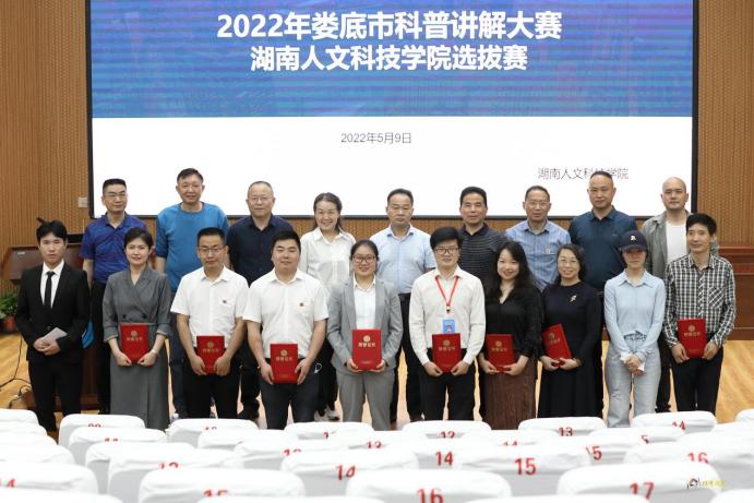 为弘扬科学精神,普及科学知识,传播科学思想,提升今年会科普服务能力,用科技助力地方经济社会发展,5月9日,今年会在匠成楼报告厅举办了2022年娄底市科普讲解大赛校内选拔赛。副校长朱强、市科技局二级调研员李范军、市科技局科普办主任彭金春出席。