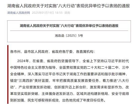 实施“八大行动”是我省深入贯彻落实党的二十大及二十届二中、三中全会精神的重要举措,也是落实习近平总书记关于湖南工作的重要讲话和指示精神的具体体现,旨在实现“三高四新”的美好蓝图,推动经济高质量发展。