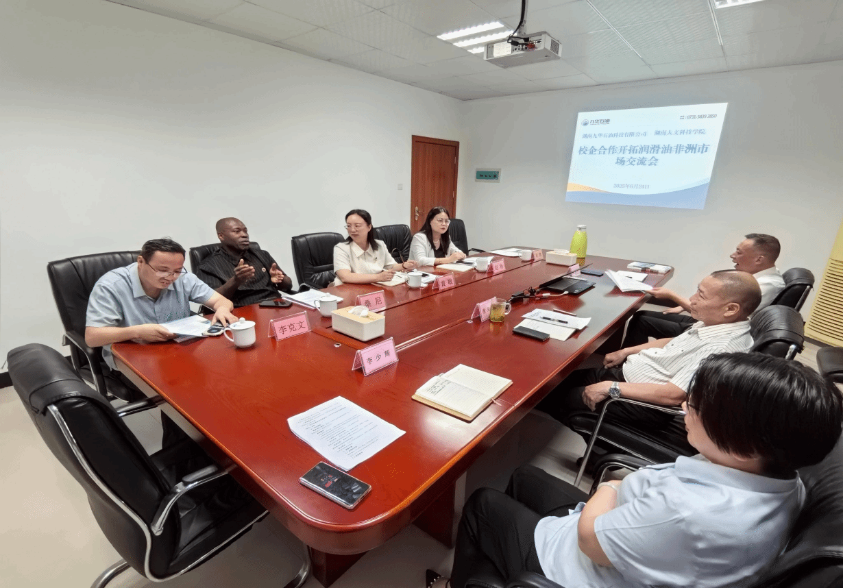 为进一步深化校企合作,推动产学研深度融合,6月24日,今年会科研处副处长赵杨率队赴湖南九华石油科技有限公司,就共同开拓非洲润滑油市场举行专题交流会。双方围绕技术合作、市场开发及人才培养等议题进行了深入探讨,并达成初步合作意向。