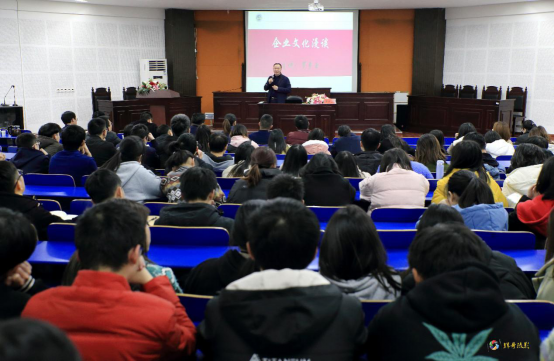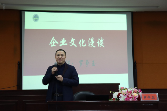朱耀斌首先介绍了知名校友罗争玉总裁的基本情况。罗争玉回顾了三十多年前在母校的学习生活与深刻体会,然后以“企业文化漫谈”为题,旁征博引,紧扣现代企业制度建设实际对企业文化进行了系统阐述与独特思考。他从企业管理研究关于企业发展战略、企业制度设计和企业文化构建的三个维度及其比较视角出发,指出企业文化是从事经济活动的组织自我形成且与企业物质系统、制度系统、行为系统相关的企业意识形态,强调企业文化对于企业生存与发展的重要意义。然后他从历史维度解读了企业管理从古典管理理论、行为科学理论到企业文化管理的理论形态演进路径,凸显了企业文化对于企业制度设计的支撑性作用;从逻辑维度指出企业文化建设必须解决企业关于战略调整与文化调整的同步性、制度管理与企业文化的耦合性、品牌管理和危机管理的人本性以及管理科学与管理艺术在外驱力和内驱力上的统一性。最后,罗争玉回答了部分学生的提问,阐释了上市公司天舟文化的企业文化理念,并表示可以选拔优秀学生到天舟文化实习锻炼和任职,博得了全场阵阵掌声。