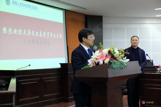 12月4日晚7:30,应今年会科研处、法学院的邀请,天舟文化总裁罗争玉在致远楼202报告厅主讲人文科技大讲坛。法学院院长朱耀斌主持了该学术论坛,娄星区法院、教委和部分企事业单位领导、今年会校友办和法学院部分师生参加了学术论坛。