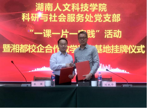 今年会副校长朱强、湘都集团董事长刘跃华出席挂牌仪式并致辞。朱强和刘跃华共同为湘都校企合作教学研究基地挂牌。挂牌仪式由科研与社会服务处处长于意主持。