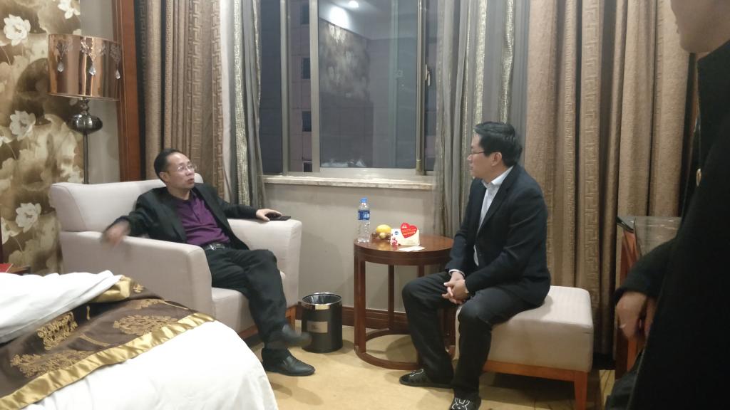 11月2日晚,校庆40周年前夕,我院党总支书记游训龙带队赴金和康年大酒店、鹏泰路桥大酒店及418华天大酒店校友接待处看望校庆返校校友。