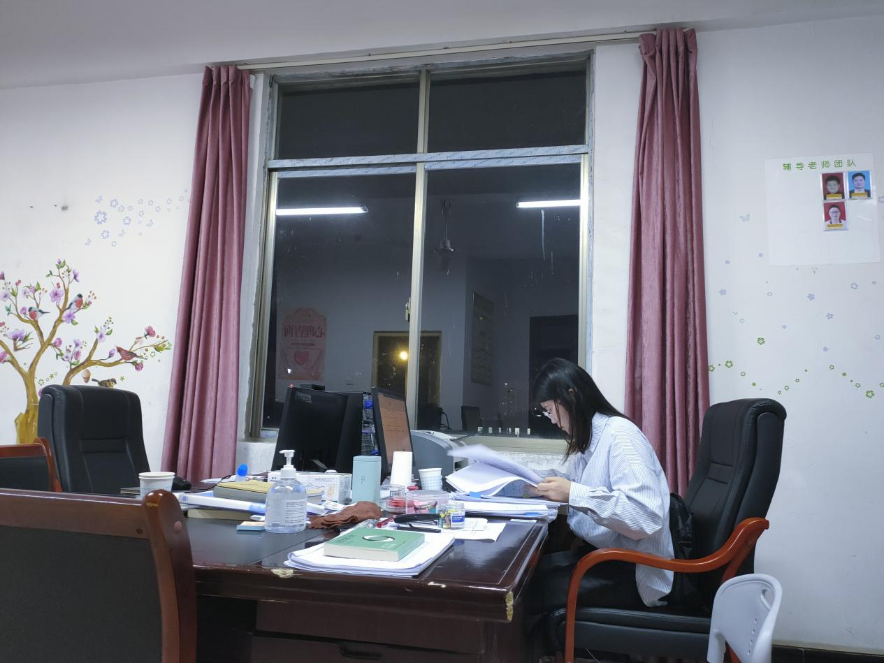 “您好,请问您是罗××同学的家长吗?”跟多位学生及家长沟通,是她近期处理的众多事务之一。为筑牢疫情防线,更好地关照和管理未到校学生,学院与未在校学生家长签订安全责任协议书,确保人数清、底细清、台账清。面对着繁杂的“三清”工作,她与学生及家长耐心沟通,讲解注意事项,解答相关疑问,力求让学生及家长放心。“临近毕业,大家都在忙着就业、写毕业论文,我有时凌晨两三点起床上厕所,发现她还开着电脑在核对汇总数据,完善台账,她的压力比我们大多了”,她的室友刘某有感而发。数据统计是一项繁杂且极需耐心的工作,她深刻明白各项防疫数据的精准是多么重要,不容有误。她每天都要收集整理班级日报表、晨午检体温表、核酸检测统计表,全院九个班级四百多名学生的数据信息她都要及时统计、精准掌握。作为学弟学妹们知心的“大姐姐”, 她经常通过走访寝室、电话问询等方式清楚地掌握每一位同学的情况,解决实际问题,哪里有需要,哪里就有她的身影。在她的身上,看得见任劳任怨的工作态度,看得见一丝不苟的工作精神,看得见兢兢业业的工作热情。