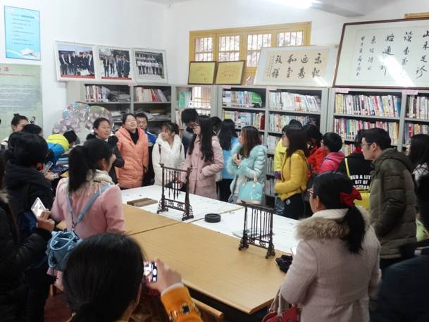 上午8时,参加考察活动的50名师生考察团乘车前往长沙县乐和乡村建设示范点。经过三个小时的车程,考察团到达了本次考察活动的第一个目的地:长沙县开慧镇葛家山村。2013 年5 月长沙县与北京地球村正式签订项目合作协议,在长沙县开慧镇葛家山村、金井镇惠农村、春华镇金鼎山村、福临镇金坑桥村、白沙镇双冲村开展“乐和乡村”示范村建设试点工作。作为长沙县首批“乐和乡村”试点村,葛家山村与金鼎山村的干部、社工、村民在两年多的时间里一起努力,使整个村貌发生了翻天覆地的变化。在葛家山村社工负责人的带领下,考察团参观了葛家山村“乐和大院”,从一些文字和图片资料上很鲜明地展示出“乐和乡村”建设的优越性,从保留的一些旧时农具用品中依然能够感受到现在的美好生活就是劳动的成果。午饭过后,葛家山村社工负责人在国学堂为考察团的师生详细介绍了乐和文化和乐和乡村建设的基本思路和发展史,之后又以学生提问的方式进行互动交流,促进了学生对“乐和文化”深层次的理解。