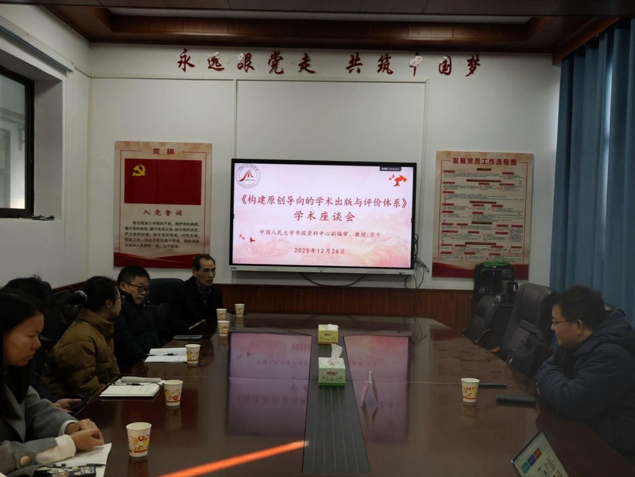 为提升学术成果发表质量、强化学科评价认知。12月26日,中国人民大学书报资料中心副编审万千应邀在若谷楼206会议室就“构建以原创为导向的学术出版与评价体系”开展专题指导。本次座谈会由院长于意主持,学院部分教师参加。