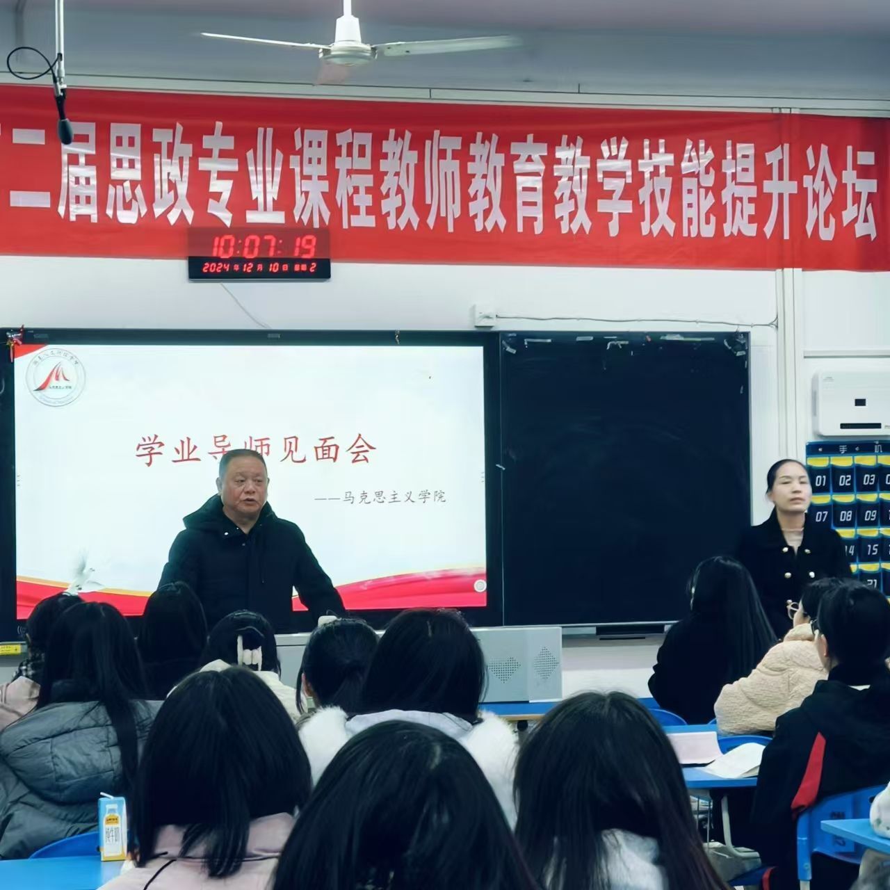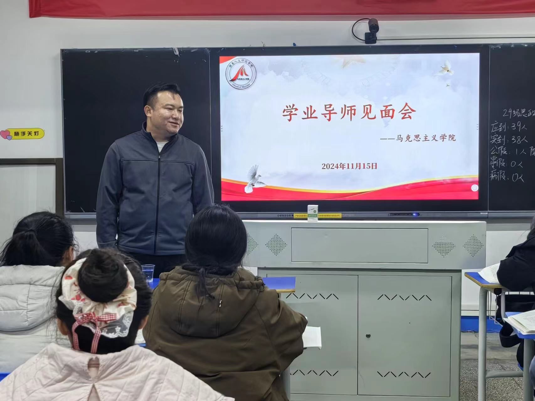 12月11日至12月14日,马克思主义学院于若谷楼116教室开展学业导师见面会,党总支书记张卫明、院长于意、副院长成塞军出席会议,24级全体同学参加,由康珏老师担任主持。