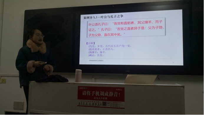 首先,张娟老师上台授课,她以“亲亲相隐”对和谐社会、法制社会的影响为课题,围绕亲亲相隐简介、我国禁止亲亲相隐的立法现状、亲亲相隐对和谐社会和法制建设的影响这三个部分展开授课。接着,刘辉玲老师上台授课,她主讲的内容是“中国精神”,集中体现了中国人民的伟大创造精神、奋斗精神、梦想精神,充分阐述了中国精神的构成元素。最后,杨国辉副院长、谢科峰等老师对两位老师的授课进行了点评,在肯定两位老师优点的基础上,重点分析了存在的问题及产生问题的原因,为两位老师参加省思修年会提出了建设性意见。