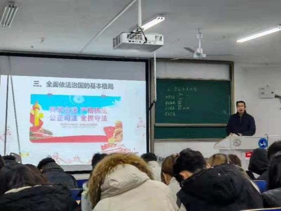 首先,孙淇庭就《思想道德修养与法律基础课程》第六章第三节建设中国特色社会主义法治体系中“全面依法治国的基本格局”这一知识点展开介绍。随后,他运用丰富的案例,结合当下时事热点,从科学立法、严格执法、公正司法、全民守法四个方面向同学们详细阐释了全面依法治国的重要性和必要性。课堂上,同学们踊跃发言,气氛活跃。课后,我院听课老师就孙淇庭老师的授课进行了细致点评,称赞优点的同时也提出了中肯的建议。