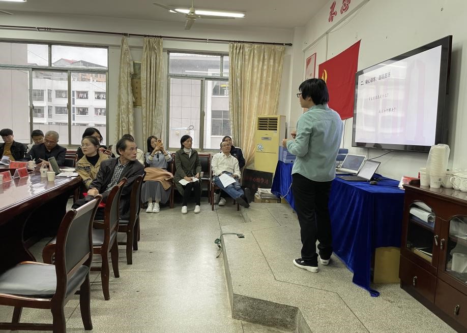 李伏清教授结合自身丰富的教学竞赛经历,从教师课堂前期备课的基本要求、教师自身素质培养、湘潭大学教学备战经验以及推动教学与实践相结合等四个方面为我院教师做了一场专题指导。她指出,教师平常备课应当以教育部专题指南为准,熟读教材内容,在遵循教材基本框架的前提下学会灵活变通。青年教师应当注重培养自身技能,弘扬工匠精神,对工作要积极主动,满怀信心与激情。以湘潭大学成功开办“四史”教育为例,李伏清教授勉励我院教师应不断提高热点意识,实现“三教一体”,成立教研组方便日后教学指导。她强调,教师要在紧扣教材的同时跳出教材,注重实践,以赛促教,讲好身边的故事,讲好学生喜闻乐见的故事。总之,教师在教学过程中要打牢基础,站稳讲台;精心锤炼,激扬赛场;久久为功,打造金课。