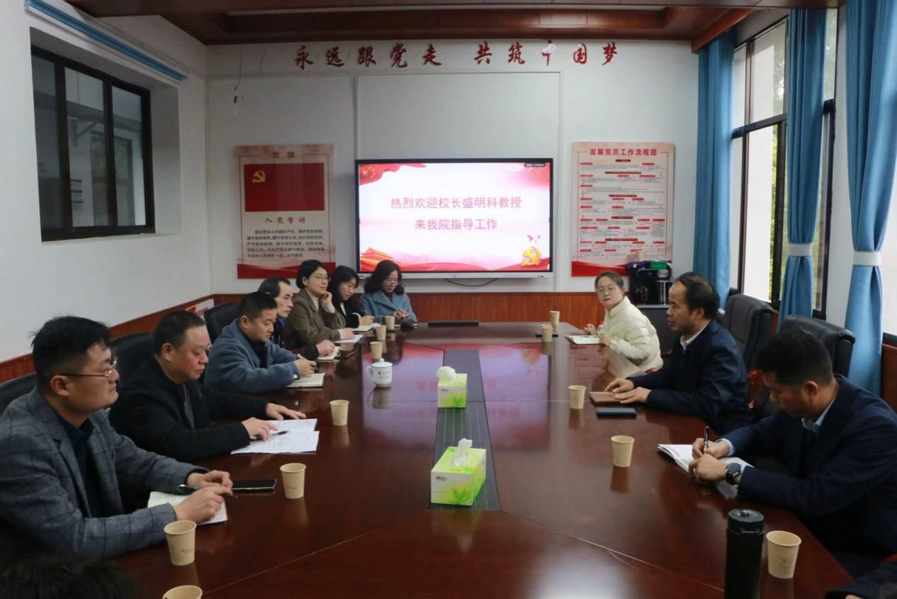 3月13日上午,校长盛明科教授一行莅临我院指导工作。我院院长张卫明教授、副院长杨国辉教授、党总支副书记周友博士及部分教职工参加。