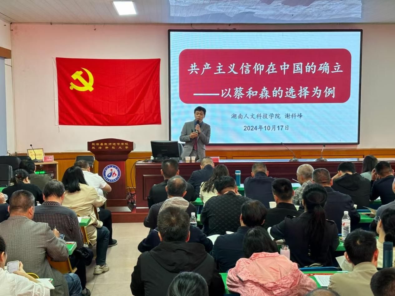 为加强对党员的思想建设,双峰县于 10 月 17 日举办了 2024 年第三期教育系统共产党员轮训活动。我院谢科峰博士受邀在双峰县教师进修学校为全县教育系统初中阶段党员教师开展授课工作。